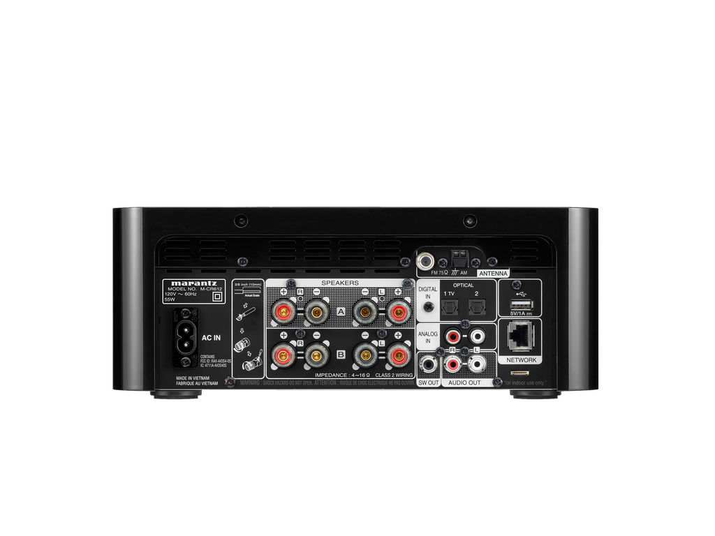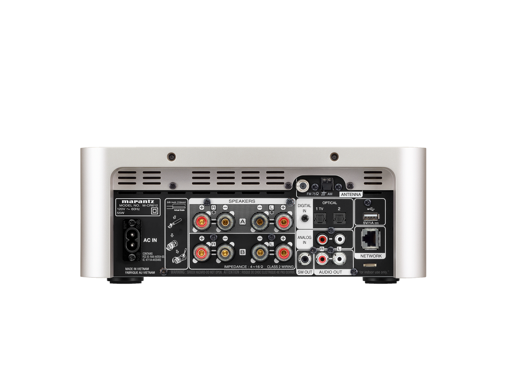 Il progetto utilizza una sezione di amplificazione digitale ad alta efficienza con 4 canali, configurabile per pilotare due coppie di diffusori con volume indipendente, oppure una singola coppia in modalità Parallel BTL o bi-amp. Questa flessibilità, unita al design compatto e alla tipica messa a punto sonora Marantz, rende il Melody M-CR612 un prodotto molto interessante per impianti stereo completi ma poco ingombranti.